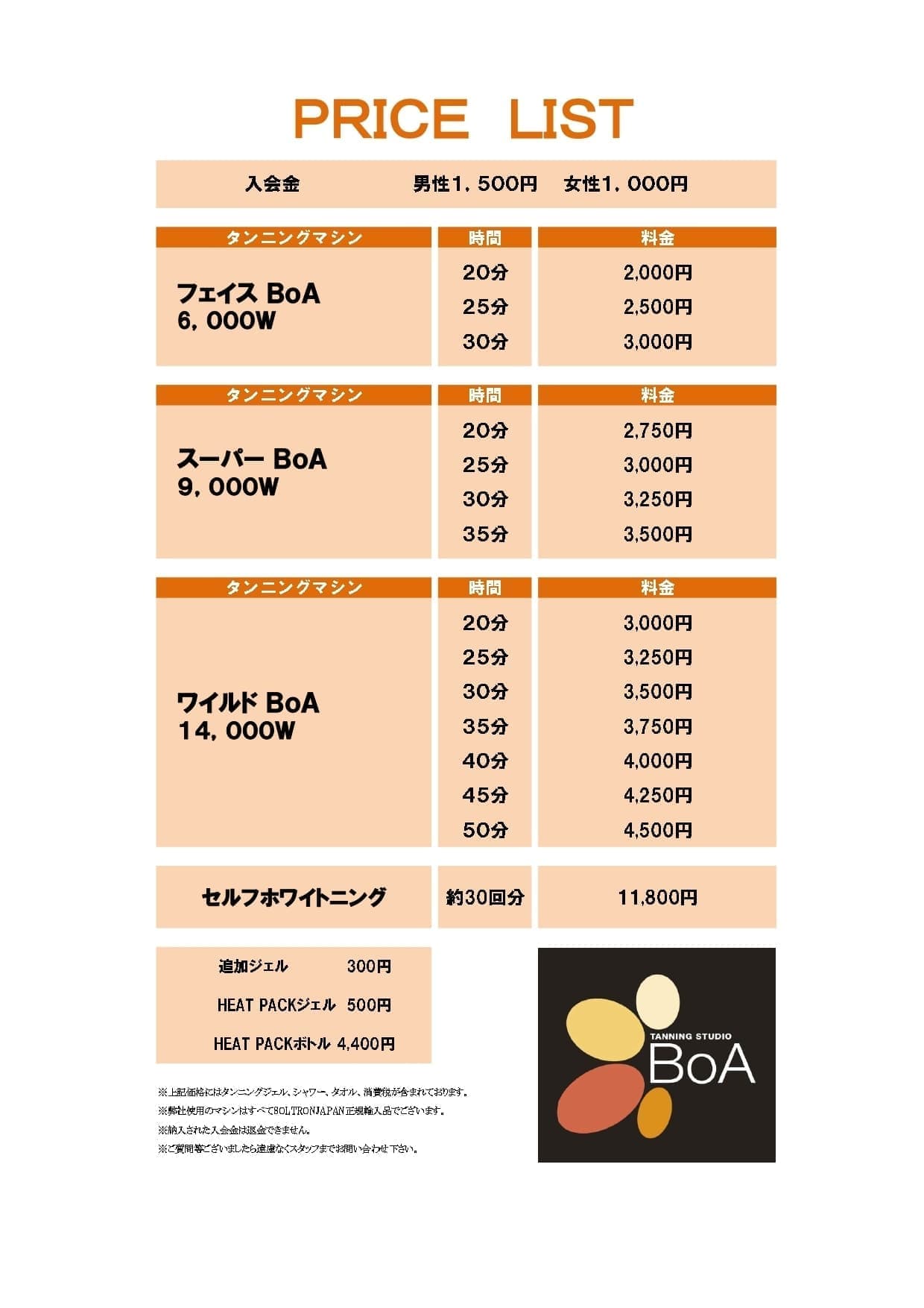 今後ともタンニングスタジオBoAをどうぞよろしくお願いいたします。