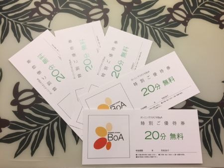 BoA公式LINEよりクーポンをご提示ください。